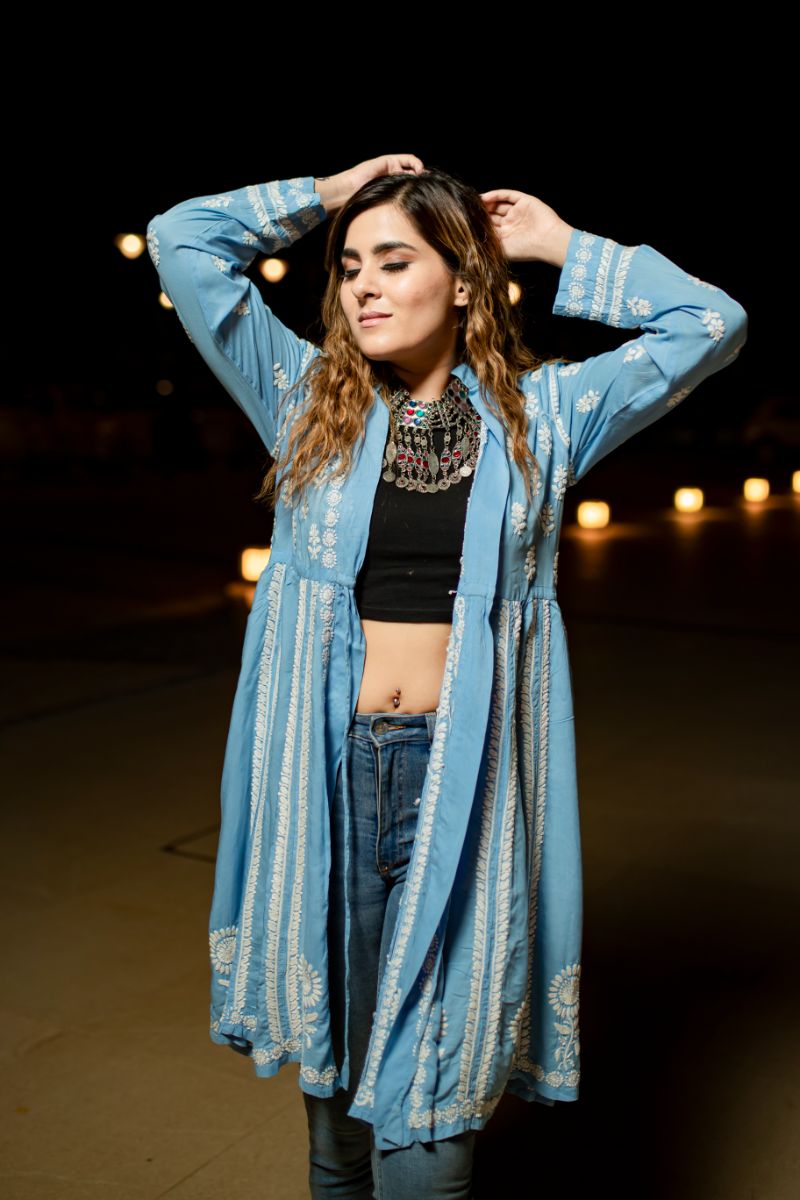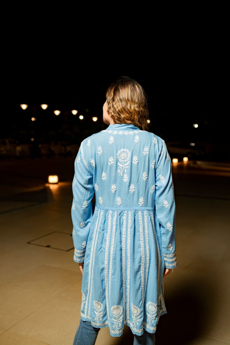 Jhoomri Modal cotton Aline shrug style kurta offers the perfect blend of style, chic and comfort. this Kurta is so versatile ,can be used as a Shrug, kurta or cover-up
