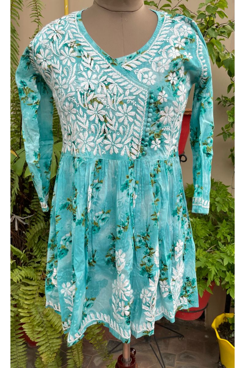 cute and adorable floral print mulmul cotton short angarkha style kurta for your day to day wear.