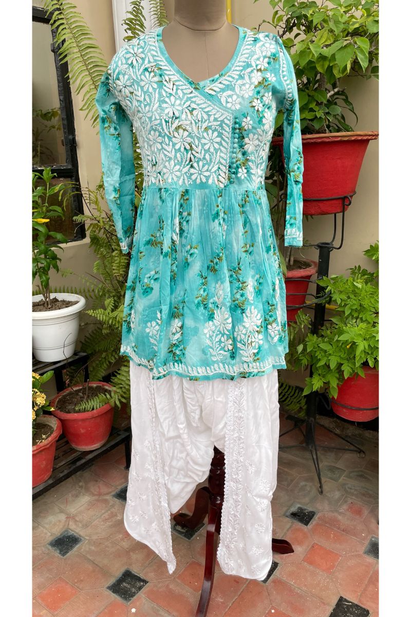 Floral print mulmul short Angarkha style kurta