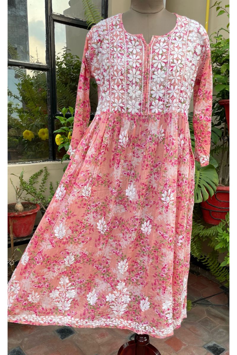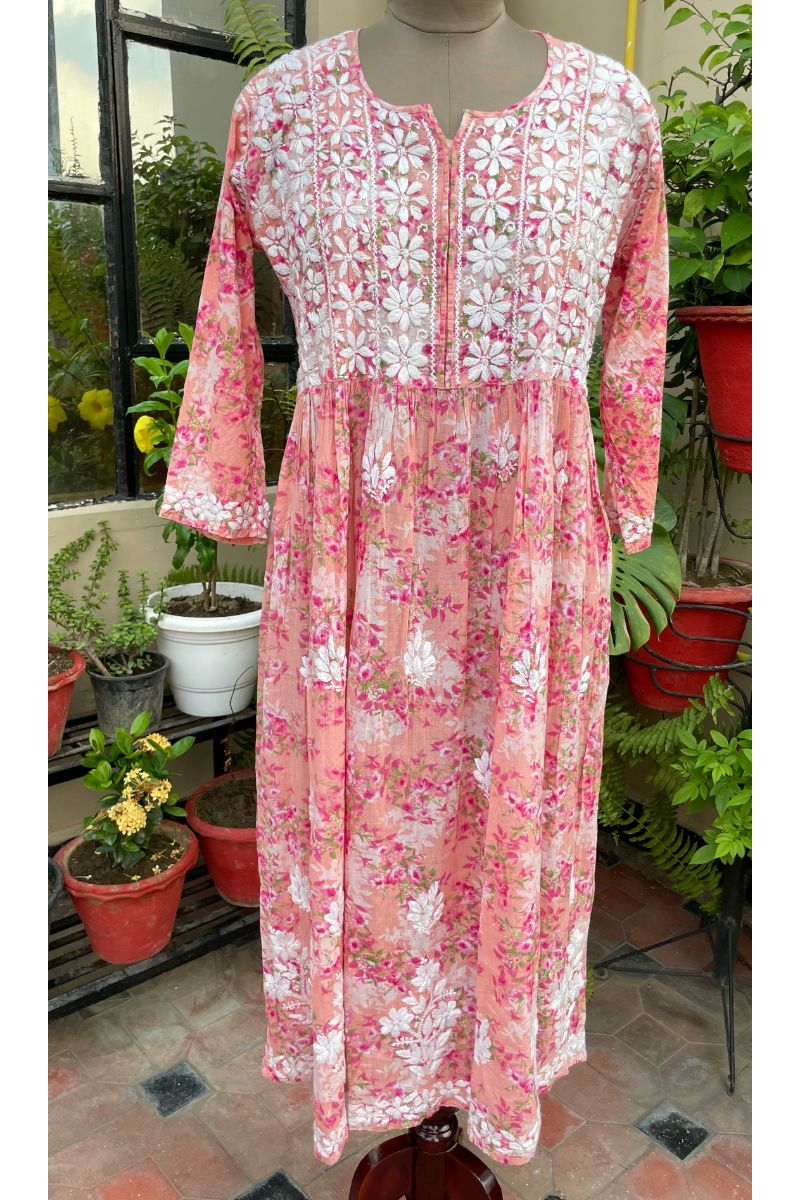 Garden print mulmul long gown.